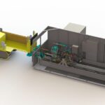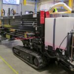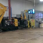 This test station is capable of functionally testing various shapes and sizes of horizontal directional drilling machines used for trenchless installation of piping, cables, or conduit. The fully loaded test applies force against the push and pull of the boring drill along with resistance to the rotational movement of the drill itself. Other functions such as CAN, the mudding system, and underground current detection are also verified.