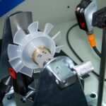 Compact balancing machines for water meter components with silica sand vibration dampening and no-foundation installation.