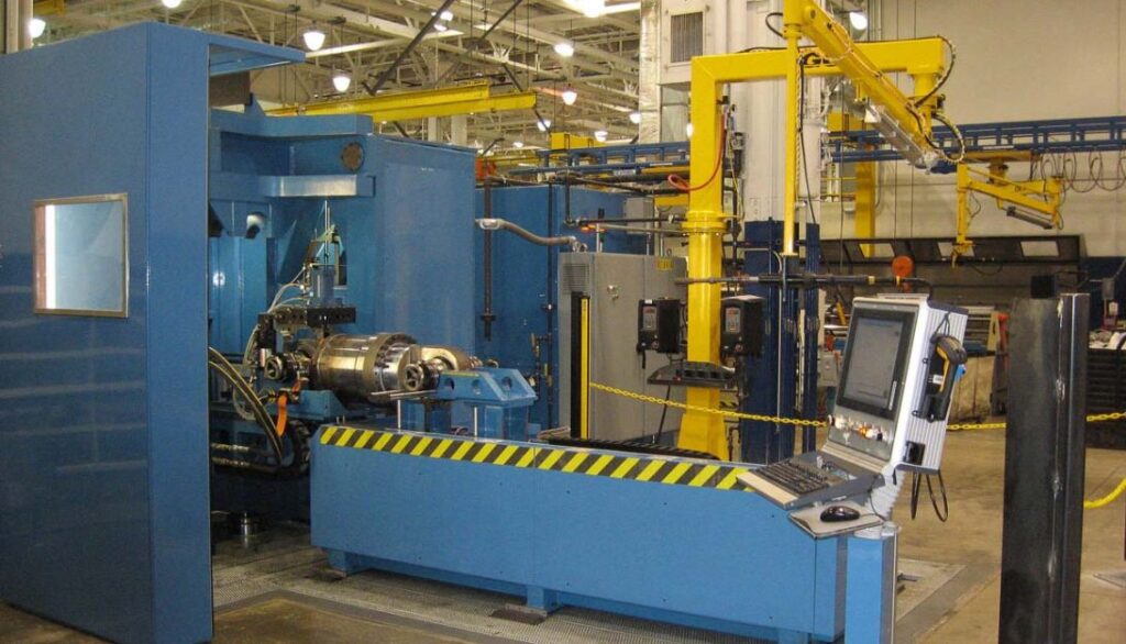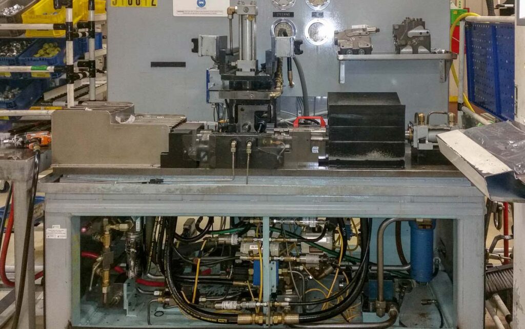 Titan Front Strut Assembly/Test system for fluid power linear motion applications. Titan has built several different systems for assembling and testing hydraulic struts for heavy-duty mining trucks.