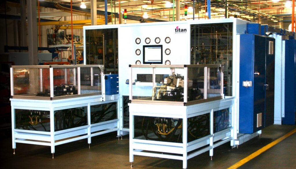 Titan Priority Regulator Valve Test system for fluid power valves applications. Designed and built to improve performance, profitability, and quality, our fluid power test stands are second to none. Priority valves receive custom engineering for specific applications, making each valve and associated tests unique. The test system is designed for customer-specific needs and is almost completely automated, our test systems accept a wide range of products/models and require minimal operator interaction.