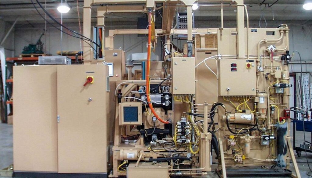 Titan Wet Clutch system for powertrain transmission applications. Custom test station designed and built to test large commercial truck wet clutches. These hydraulic clutches rely on non-contact engagement to almost eliminate wear and tear by compressing oil forming a bond between the clutch plates. This test station fully functionally tests engagement/disengagement, lockup, and hysteresis.