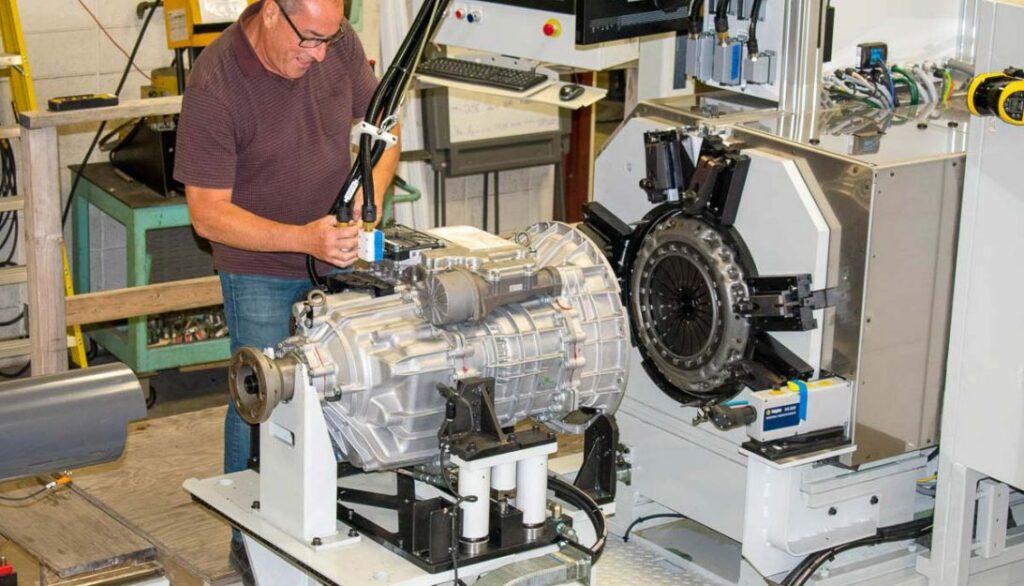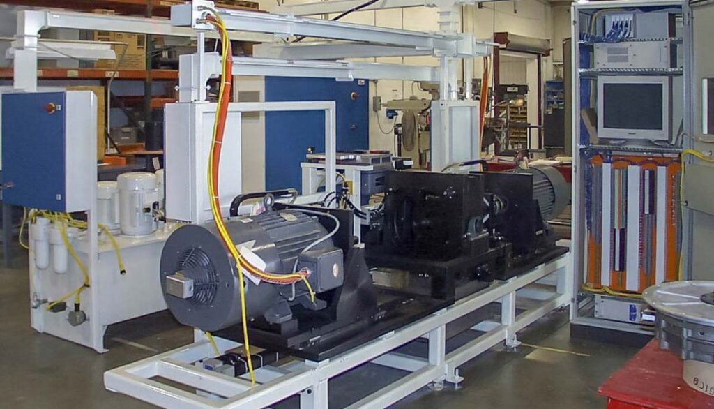 Titan Class 3-8 Truck – Automatic system for powertrain transmission applications. Test stations designed and built to simulate a fully functional commercial truck. Using two VFD Controlled Electrical Motors these stations simulate the input shaft from the engine and the output shaft from the drivetrain to make these transmission feel like they are at home in the truck they are meant for. Automatic transmissions commanded via CAN bus from a simulated Driver Interface Device (DID) to engage FNR gears. The transmission determines shifting points based on input/output shaft speeds, requested acceleration, and torque. These are CAN-based systems with the transmission controller and the engine simulation control working in harmony to apply the right amount of torque, engage/disengage the clutch, command the shift, and to smoothly transition from one gear to the next. The system includes a full computer-based NVH system incorporating accelerometers, microphones, laser vibrometers, torque and speed sensors. Live data is captured for the full test of the transmission, recording live data at up to 10khz per channel.